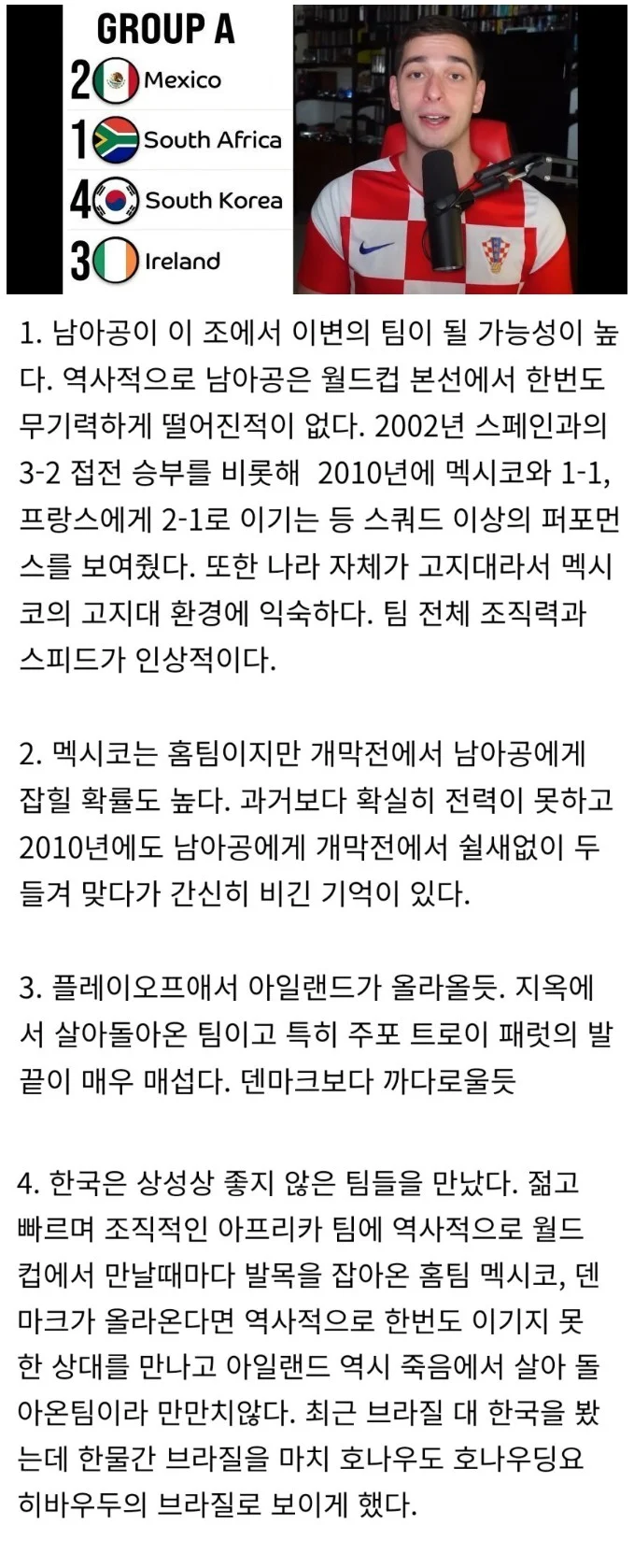 해축유튜버 : 남아공이 A조 이변의 주인공이 될 가능성도 있다.