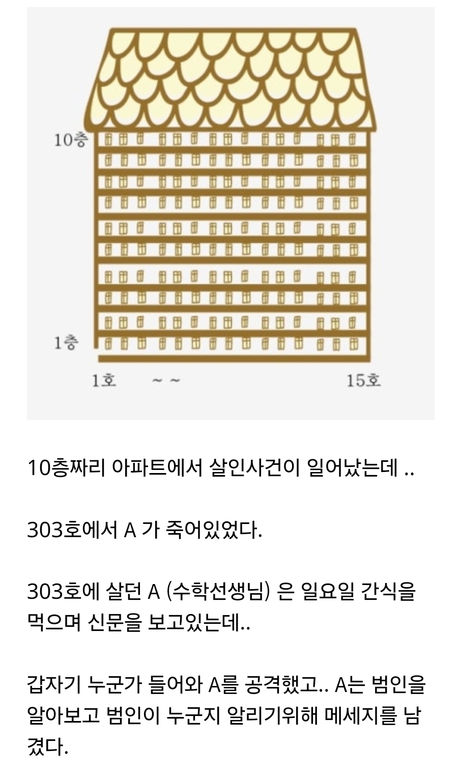 범인은 몇호에 살고 있을까? 작성자 정보 최고관리자 작성일 2025.12.22 17:12 컨텐츠 정보 21 조회 0 댓글 0 추천 0 비추천 목록 0 추천 추천 비추천 0 비추천 댓글 로그인한 회원만 댓글 등록이 가능합니다. 이전 다음 목록
