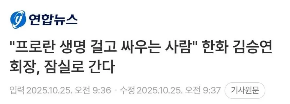 한화 회장님....한국시리즈 앞두고 한말씀... 작성자 정보 최고관리자 작성일 10.25 17:49 컨텐츠 정보 11 조회 0 댓글 0 추천 0 비추천 목록 딴분은 몰라도 이분이 이러니까 좀 무섭네요... 0 추천 추천 비추천 0 비추천 댓글 로그인한 회원만 댓글 등록이 가능합니다. 이전 다음 목록