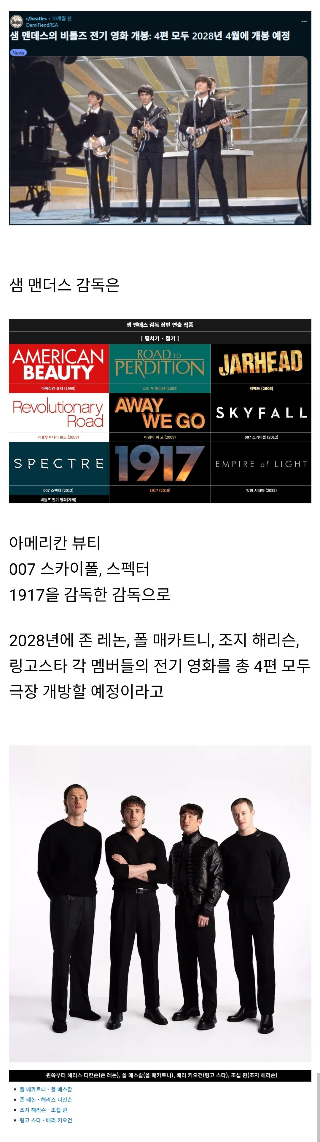 비틀즈 전기 영화 2028년 극장 개봉 작성자 정보 최고관리자 작성일 02.08 12:15 컨텐츠 정보 3 조회 0 댓글 0 추천 0 비추천 목록 0 추천 추천 비추천 0 비추천 댓글 로그인한 회원만 댓글 등록이 가능합니다. 이전 다음 목록