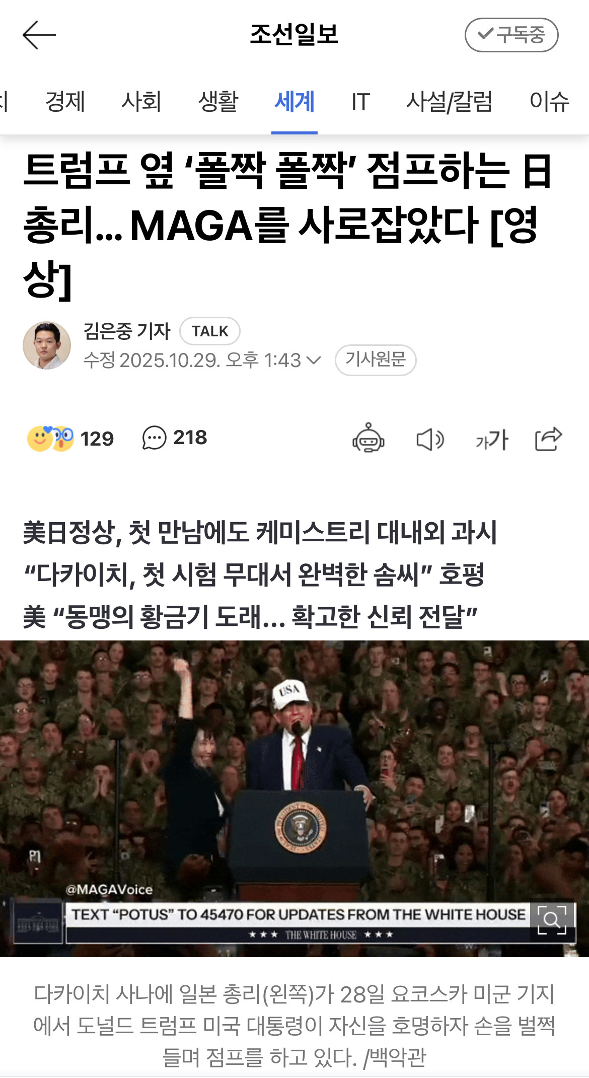 조선일보 헤드라인 뉴스 근황 작성자 정보 최고관리자 작성일 2025.10.29 21:42 컨텐츠 정보 30 조회 0 댓글 0 추천 0 비추천 목록 한미 정상 회담 중인데 일본 총리 기사가 헤드라인임 ㅋㅋㅋㅋㅋㅋㅋ 그 와중에 베댓 실화냐.. 0 추천 추천 비추천 0 비추천 댓글 로그인한 회원만 댓글 등록이 가능합니다. 이전 다음 목록